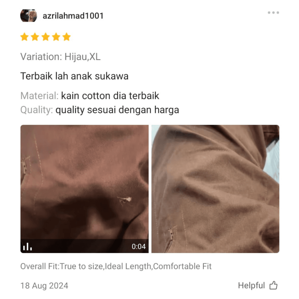 kami sarankan mencuci dengan mesin menggunakan mod lembut dan elakkan penggunaan peluntur. Gunakan suhu rendah semasa menggosok untuk menjaga kualiti kain.